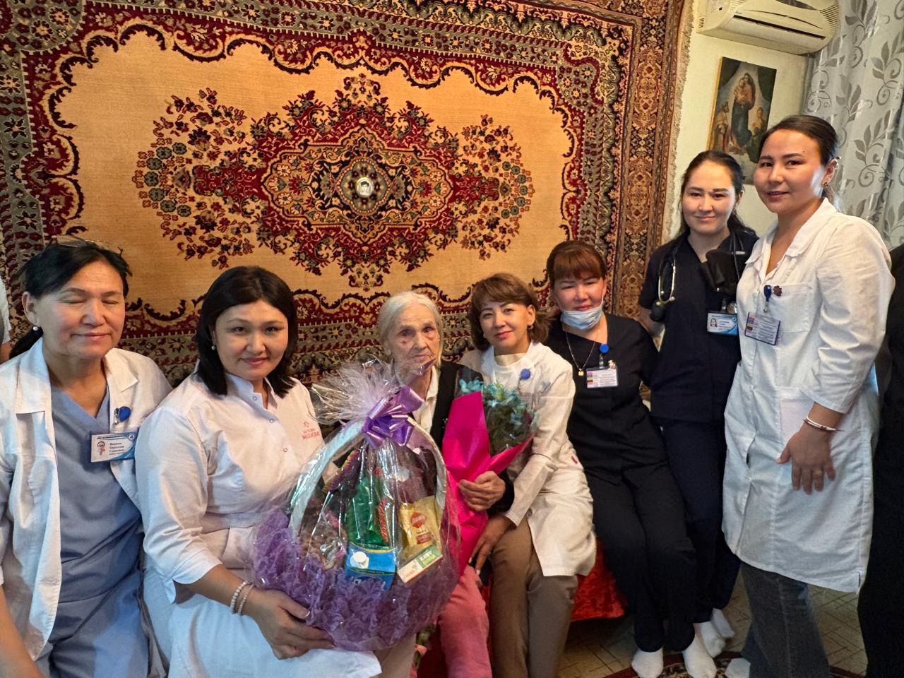 Осыған орай, Шымкент қаласы денсаулық сақтау басқармасына қарасты №4 қалалық емхананың қызметкерлері тыл еңбек ерлері Эльвира Ляшенко мен Анна Ножгинаға арнайы барып, медициналық және әлеуметтік көмек көрсетті. Емхана мамандары апалардың денсаулығын тексеріп, тиісті медициналық кеңес берді. Сонымен қатар, олардың күнделікті тұрмыста қажет ететін негізгі мұқтаждықтарын жеткізіп берді.
